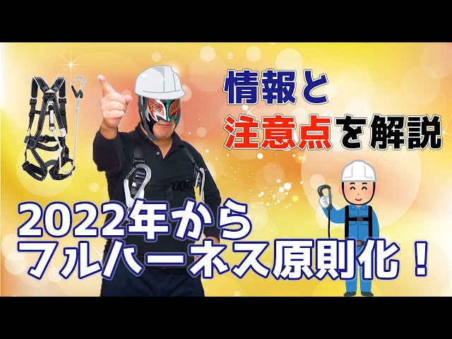 現在は、猶予期間として従来の(胴ベルト型)安全帯が使えますが、2022年完全施工日1月2日からは、ほとんどの建築関係作業員の方は「フルハーネス型墜落制止用器具」が必要となります。